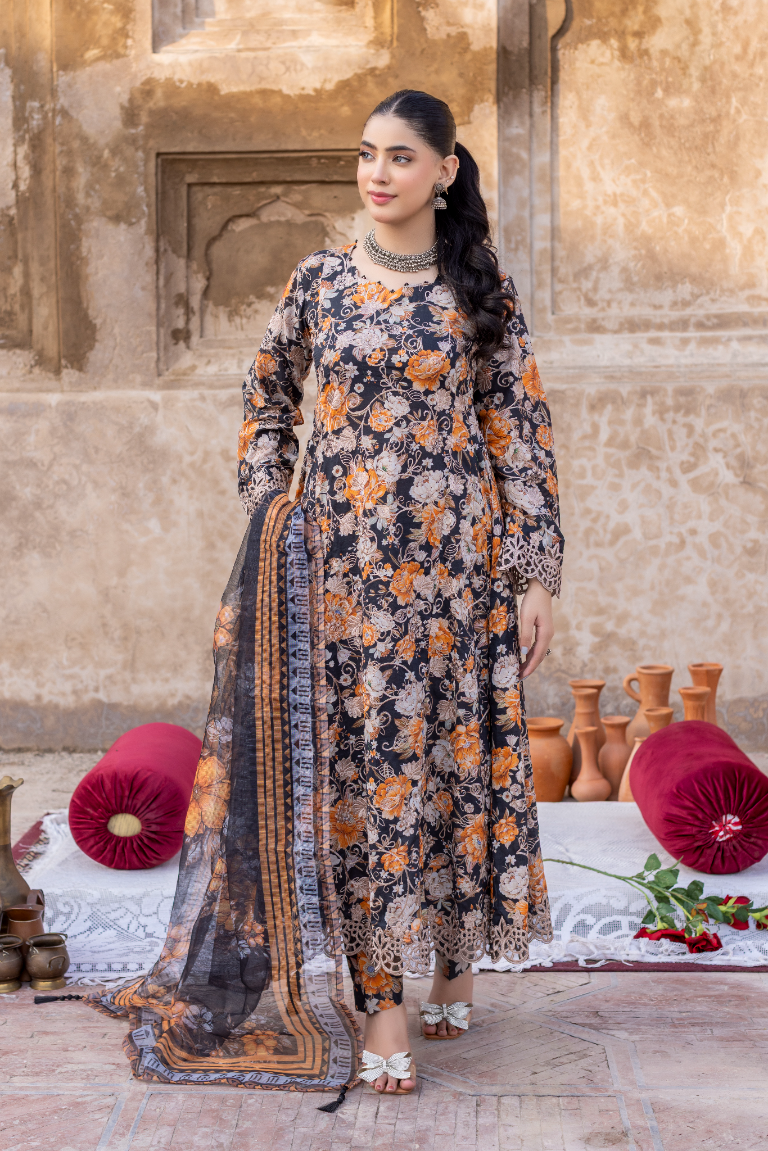 Add exquisiteness to your look with the easy-breezy charm of our long, readymade attire featuring huge flair. You can twirl in the intricate embroidery and print of this delicate dress. The cool neckline with beads enhances your aura while adding splendor to your style. Embossed floral cutwork on the hemline and sleeves induces luxury charm to your look. Complete your look with a chiffon floral printed dupatta and cotton trousers to spark elegance at any festival.