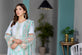 Stitched (Ready To Wear).Minimal details and modern geometric gracefully infused within a mint green readymade luxury attire. This regal dress includes a traditional ethnic style that helps you gleam and glisten. The tissue patch at the hemline and see-through sleeves design unite classics with modern perspectives. Embroidered net dupatta and stylish trousers wrap you in modernistic and artful layers of luxury.