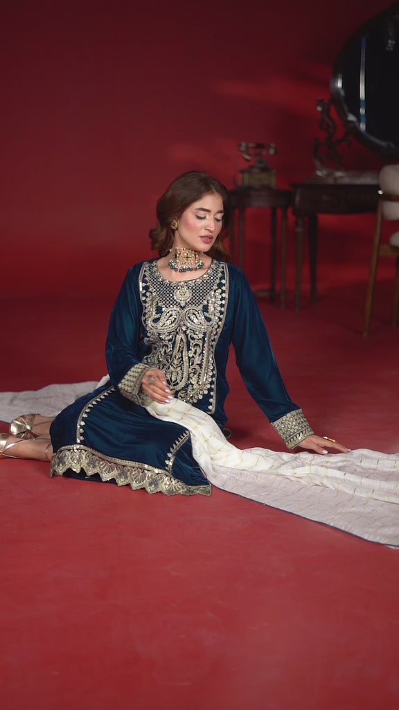 Elevate your festive wardrobe with this luxurious 3-piece ensemble, seamlessly blending timeless tradition with modern sophistication. Crafted from premium velvet, this suit exudes opulence while ensuring comfort and grace.
