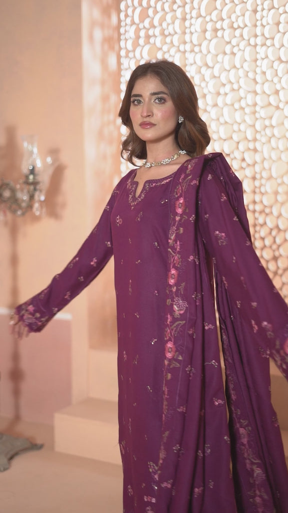 Exquisite Royal Plum Embroidered Krandi Ensemble